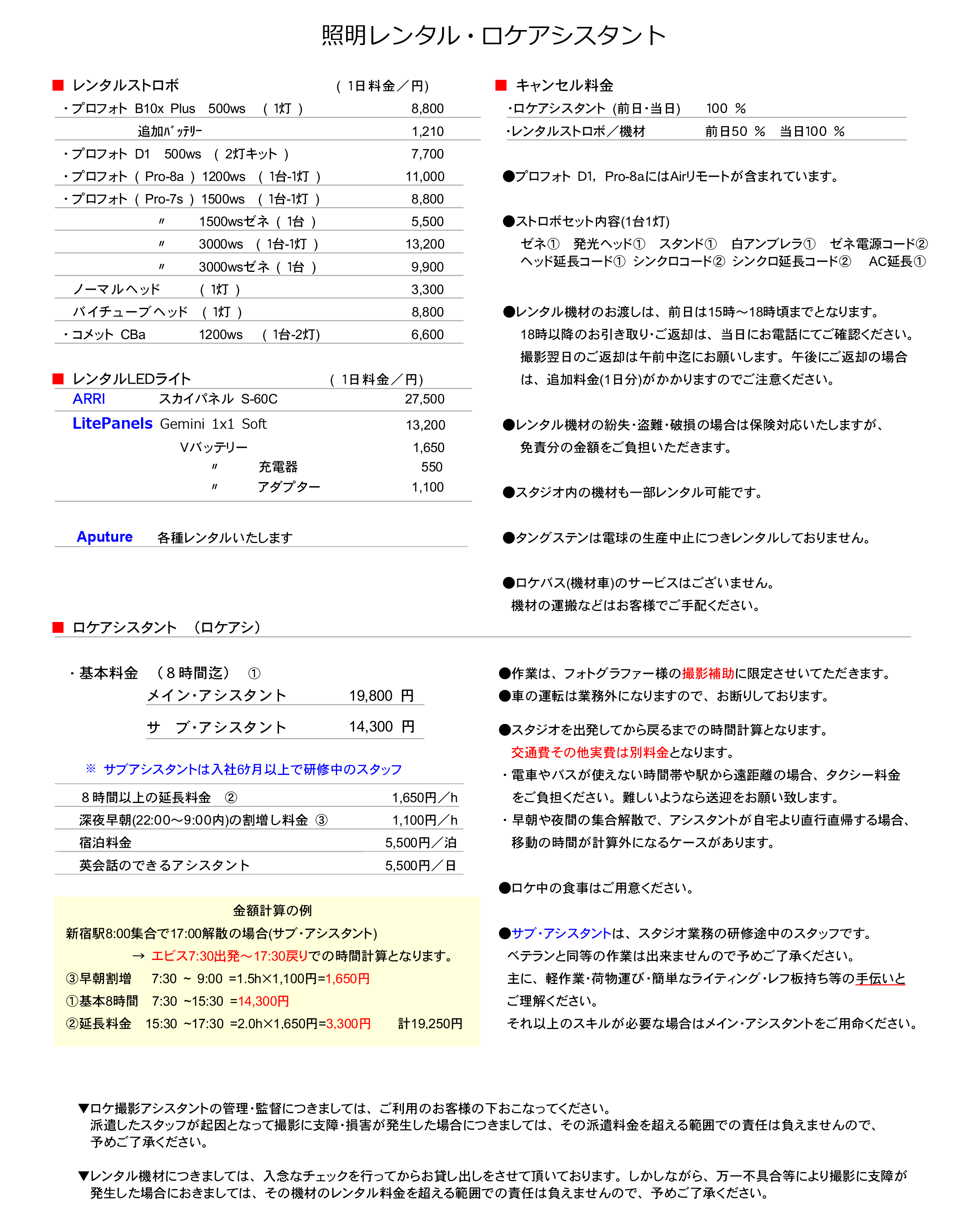 ご利用にあたりましては、日本映像スタジオ協会規定の「スタジオ賃貸借契約款」をご確認の上ご予約願います。